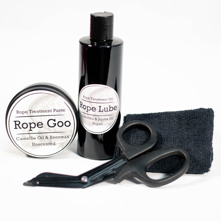 - Rope Goo: Made from our personal blend of beeswax and camellia oils, it's ideal for travel and easy to use. With the consistency of a quality lip balm, it's designed to be massaged into the rope with a hand or cloth. Perfect for giving a bit of TLC to your already treated ropes.